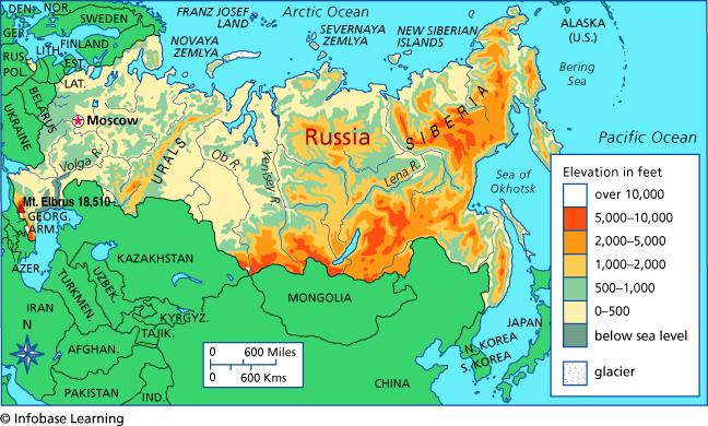 Carte en relief de la Russie. La russie d'une carte d'élévation (Europe de l'est - Europe) à imprimer. La russie d'une carte d'élévation (Europe de l'est - Europe) à télécharger.
