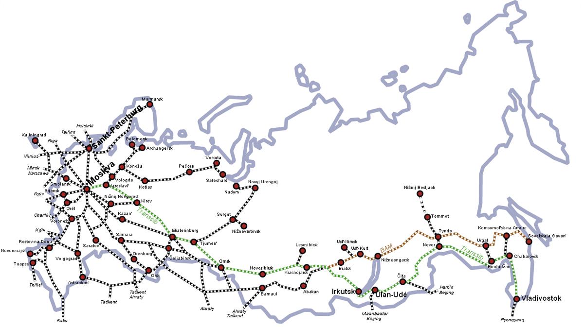 Carte du Train de la Russie. La russie train de la carte (Europe de l'est - Europe) à imprimer. La russie train de la carte (Europe de l'est - Europe) à télécharger.