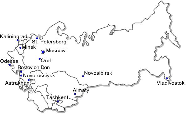 Carte de la Russie avec les grandes villes. La russie grandes villes de la carte (Europe de l'est - Europe) à imprimer. La russie grandes villes de la carte (Europe de l'est - Europe) à télécharger.